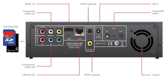 аудио стерео, аудио коаксиальный, аудио оптический, видео композитный, видео компонентный, HDMI 1.3